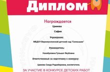 Воспитанники старшей группы детского сада совместно с родителями и педагогами, Цмиевой Саидой и Кольцовой Раисой, приняли участие в конкурсе детских работ "Открытка своими руками: котик Тим и я поздравляем любимого воспитателя". Каждый участник получил диплом от общества с ограниченной ответственностью "Фабрика детской игрушки. -
