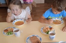 Мамы и папы, бабушки и дедушки хотят, чтобы ребёнок вырос не только сильным, но и здоровым. Здоровая и правильная еда для детского питания является источником всех витаминов и полезных веществ, нужных малышу для правильного развития. Растущий организм ребенка требует много энергии от него, ведь он постоянно бегает, играет, гуляет, познает все окружающее вокруг себя. Чтобы наполнять организм ребенка энергией, в пище должны быть жиры, белки, углеводы, минеральные вещества, витамины и вода. О правильности полезного питания можно очень долго спорить, но в любом случае в рационе малыша должны присутствовать супчики. Они не только очень полезны для растущего организма, но и хорошо действуют на пищеварительную систему ребёнка. В горячем, сытном и питательном супчике сохраняются все витамины, а благодаря жидкой основе супчик является самым лёгким блюдом. Дети младшей группы МБДОУ "Верхнеуслонский детский сад "Солнышко" очень любят супчики, поэтому растут здоровыми и крепкими!