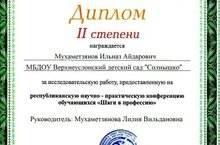 Мухаметзянов Ильназ, воспитанник подготовительной группы детского сада " Солнышко" занял 2 место в республиканском конкурсе " Шаги в профессию". Поздравляем Ильназа с очередной победой!