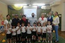 Педагоги совместно с воспитанниками старшей группы детского сада " Солнышко" приняли участие в муниципальном фестивале - конкурсе по предупреждению детского дорожно-транспортного травматизма «Доброй дорогой детства», посвященного 85-летию службы Госавтоинспекции.