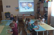 Воспитателем дополнительного образования Кольцовой Раисой с воспитанниками подготовительной группы проведена беседа "Первый космонавт".