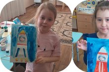 Тема космоса всегда интересна детям. Поэтому сегодня в преддверии дня космонавтики в средней группе ребята со своим воспитателем Кольцовой Раисой мастерили ракеты. Детвора послушала беседу и посмотрела презентацию о первом космонавта Юрие Гагарине. -