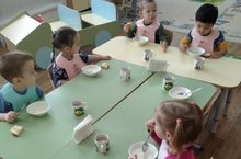 Для того чтобы дети научились ценить труд других людей, работать в команде, быть дисциплинированными и ответственными, в подготовительной группе «Крепыши» есть уголок дежурства, где можно проследить очередность дежурства. И теперь, вооружившись столовыми приборами и салфетками, дежурные с удовольствием выполняют трудовые поручения. Совместно с воспитателем дети учатся красиво накрывать стол, раскладывают ложки, ставят хлебницы и стаканы с салфетками. Основное внимание воспитатель уделяет обучению детей последовательности в работе и умению не отвлекаться от дела, а также стремится к созданию спокойной обстановки. Правильно и красиво сервированный стол всегда вызывает у детей хороший аппетит. -