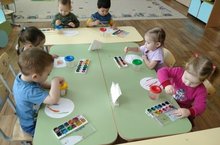 В группе раннего возраста «Любознайки » дети вместе с воспитателем рассмотрели тарелочки с полосками. А затем решили нарисовать методом прикладывания кисти к листу бумаги, двигая ею в разные направления. Великолепные тарелочки получились у детей.