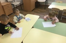 Детям очень нравится на песке делать отпечатки ладошек, изображать пальчиками следы животных. А ещё очень интересно закапывать в песок свои ручки. Ребята младшей группы получили массу впечатлений и удовольствие от игр с песком. -