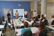 Сотрудники компании показали, как устроена работа в IT-компании изнутри, рассказали любопытные факты об офисе и преимуществах работы в сфере IT, а также провели экскурсию по самым необычным местамВедущие специалисты представили свои направления работы, поделились профессиональным опытом и предложили ребятам попробовать решить задачи, с которыми сталкиваются в повседневной работе.