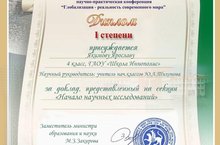 Год начался с отличных новостей! Якимов Я., учащийся 4А класса, принял участие в республиканской научно-практической конференции"Глобализация-реальность современного мира" с докладом "Планета скажет нам спасибо" и занял I место! Поздравляем победителя и его наставника Тихонову Ю.А.!