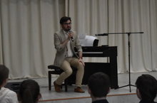 Сегодня в рамках предметной недели прошла творческая встреча с педагогом, композитором Низамовым Эльмиром Жавдетовичем. Эльмир Жавдетович является автором многих произведений: "Maestoso" для органа, "В полной темноте или музыка на ощупь" для скрипки и фортепиано, "Серенада Шарманщика" для ансамбля солистов, «Алтын Казан» - рок-опера в 2-х действиях. Встреча прошла в очень тёплой обстановке, ребята задавали много интересных вопросов, а Эльмир Жавдетович представил новые произведения и порадовал интересной импровизацией.