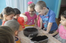 Воспитанники старшей группы МБДОУ «Печищиснкий детский сад» вместе с педагогами Еленой Баймяшкиной и Тамарой Севастьяновой сеяли семена цветов на рассаду.
