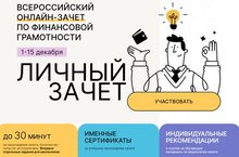 С 1 по 15 декабря проходит пятый ежегодный Всероссийский онлайн зачет по финансовой грамотности (finzachet.ru), который организует Банк России и Агентство стратегических инициатив.