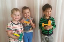 В детском саду дети не только знакомятся с изделиями народного творчества, но и сами принимают активное участие в их создании. На этой неделе мальчики сами изготовили игрушки из глины. Прекрасные дымковские барышни украшают выставку детского творчества в нашем саду.