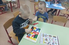 Кече төркем балалары иртә таңнан дидактик уеннар уйныйлар, шул вакытта төсләрне һәм формаларны ныгыталар, кулларның вак моторикасын үстерүне дәвам итәләр.