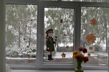 Учащиеся под руководством учителей украсили окна школы, своих