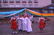 27 сентября коллектив МБОУ "Верхнеуслонская СОШ" принял участие в районном фольклорном фестивале работников педобразования "Ярмарка талантов". В этом году на суд жюри был представлен языческий праздник "Коляда". Зрители смогли увидеть традиционные для этого народного гуляния обряды: уборка в доме, приготовление праздничного стола, гадания, обряд "кормления мороза". Открылся праздник славянским танцем, символизирующим рождение Солнца. И, конечно же, ряженые! Зажигательный Цыган с ученым Медведем и танцуюшей Козой. Частушки, песни, хороводы. Праздник удался на славу! Встретив Коляду, гости и все желающие могли насладиться горячим чаем с пирогами и блинами.