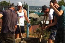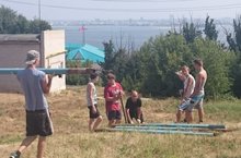 Сегодня 9 августа 2016 года учителя МБОУ "Верхнеуслонская СОШ" Анохин С.Н., Ильин П.Г. и водитель Картапов А.Н. ведут сварочные работы по установке ограждения. В качестве подсобных рабочих у них ученики Хватков Саша и Данилов Дима, которые работают от Центра Занятости.