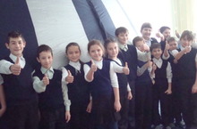 4 февраля МБОУ "Верхнеуслонская СОШ" посетил универсальный цифровой 3D театр, который представляет из себя надувную конструкцию высотой 2,5 метра. Учащимся был показан фильм "Одинокое движение Земли" в полнокупольном варианте, что создает ощущение присутствия. Ребятам предложили представвить, что они оказались далеко в космосе. События фильма происходят в 2081 году на поверхности Луны.