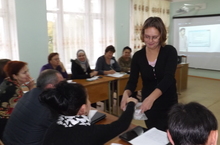 26 сентября на базе МБОУ "Верхнеуслонская СОШ" состоялся районный семинар учителей английского языка под руководством методист ИМЦ "Отдел образования" Саттаровой Н.Г. и руководителя РМО Рахчевой Н.А. Семинар состоял из двух частей: открытые уроки, мастер-классы и круглый стол. Учитель английского языка Козина Е.Н. провела с педагогами мастер-класс на тему "Зарубежный опыт в преподавании иностранного языка". Работа шла в парах. Необходимо было по рисунку описать изображенную речевую ситуацию, задать вопросы так, чтобы получился мини-диалог. Мингазетдинова И.В. также провела мастер-класс с педагогами на тему "Активизация лексики, грамматики в устной речи. Первый день Маши в школе".Она продемонстрировала коллегам ЦОРы, которые можно использовать на уроках английского языка, поделилась опытом создания собственных медиа-уроков. Файрушина А.Х. провела открытый урок с учащимися 6-го класса на тему "Достопримечательности Лондона". дети выступали с докладами о театре мадам Тюссо, о здании Парламента и других знаменитых местах города, провели мини-эскурсию для гостей по Лондону. Во второй части семенара на "круглом столе" велось обсуждение рабочих программ, корректировка плана предметных недель , составленного на предстоящий учебный год.