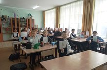 9 б сыйныфта Россиянең төп символлары - герб, гимн һәм Россия флагы турында сөйләшү булды. Балалар видеоролик карадылар, герб һәм гимн тарихын, безнең Дәүләт флагы төсләренең әһәмиятен белделәр. Дәрес ахырында укучылар үз мәктәп кабинетлары өчен кечкенә флаглар ясадылар.