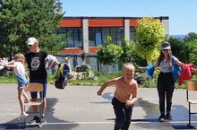 Сегодня воспитанники пришкольного оздоровительного лагеря "Солнышко" смогли почуствовать себя настоящими художниками.Каждый отряд получил задание-придумать фотозону на асфальте, то есть создать картинку с эффектом дополнительной реальности.В итоге ребята создали три фотозоны :с воздушными шарами,с парашютом и парусником.Так же в этот день каждый отряд рисовал "Картину в 5 метров".Картина, действительно, была длиною 5 метров, и нарисована не просто красками.Изображение должно включать природные материалы.Победители будут объявлены завтра на организационной линейке.