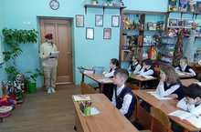 Бүген, Югары Ослан урта мәктәбенең башлангыч сыйныфларына Югары Ослан муниципаль районы эчке эшләр бүлегенең ЮХИДИ хезмәткәре Аксенова Н.М. килде.Надежда Михайловна укучыларның игътибарын кышкы чорда юлдагы куркынычларга юнәлтте һәм юлларда аеруча сак булырга чакырды.