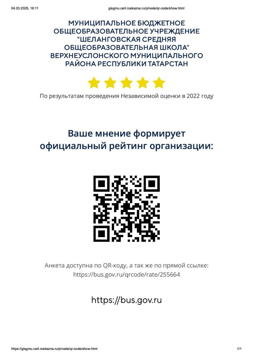 | Короткое название: | МБОУ "Шеланговская СОШ" Верхнеуслонского муниципального района РТ |