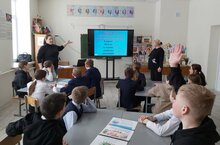 19 февраля Екатерина Жолобова и Гульшат Сиченкова провели среди учащихся 5-7 классов тематический классный час на тему «Родной язык по-своему велик!».