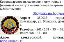 Краснодарское высшее военное училище имени генерала армии С. М. Штеменко https://kvvu.mil.ru/