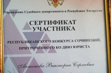 14 февраля 2020 в суде «Верхнеуслонского» района состоялось награждение участников Республиканского конкурса сочинений приуроченного ко дню юриста. Ученица 11 класса МБОУ «Шеланговская СОШ» Антонова Виктория под руководством Шафигцллина Р.А. в рамках кружка «Юный правовед» предоставили свою работу . По итогам конкурса председатель районного суда Мухаметгалиев Вакиль Нурдинович вручил нашей ученице сертификат участника и ценный подарок. Затем конкурсанты и их преподаватели сфотографировались на память с работниками Верхнеуслонского суда.