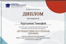 26.10.2023 года учащиеся 1 класса МБОУ «Татарско-Бурнашевская СОШ» приняли активное участие во Всероссийской познавательной онлайн-викторине «Путешествие по странам: Япония» и получили дипломы участников.