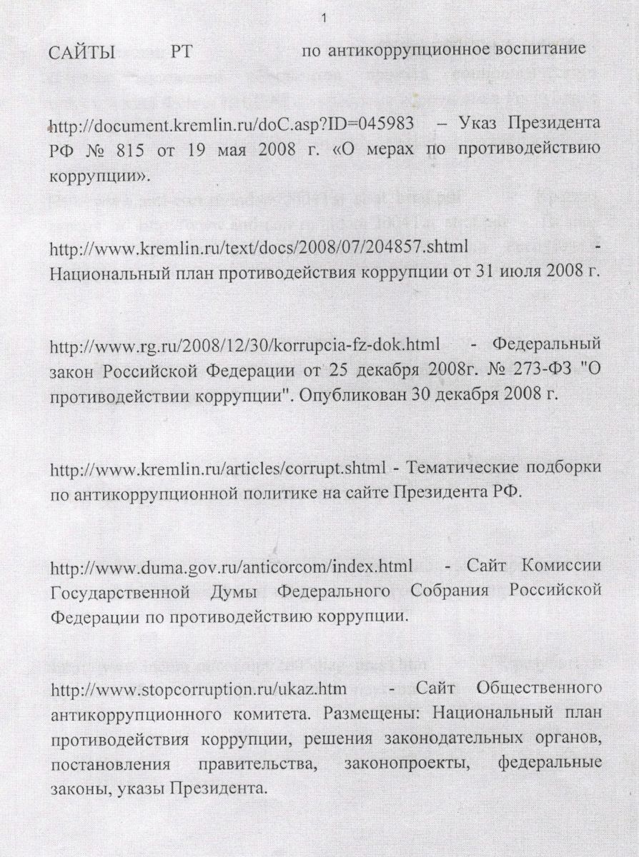 - Федеральный закон от 25.12.2008 № 273-ФЗ «О противодействии коррупции»