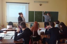 Участники семинара познакомились с методикой учителя русского языка и литературы Тихонова А.А., учителя с современным и креативным мышлением. На едином дыхании он провел урок в 10 классе по роману Ф.М. Достоевского «Преступление и наказание», в течение которого лицеисты выполняли групповую работу, анализировали, сопоставляли.