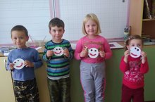 «Неделя добрых дел» для дошкольников началась с проведения воспитателем «Рефлексивного круга», включившего в себя: беседу о понятии доброта, бескорыстии и честности, в ходе которой дети рассуждали о добрых делах, том как важно думать о других, быть отзывчивым; игры «Подари комплимент другу» и «Будь добрее». Совместно с музыкальным руководителем выучили песню «Что такое доброта». С помощью воспитателя изготовили смайлики из пластилина и картона, после чего подарили их ученикам первого класса с пожеланиями хорошего настроения и отличной учебы.
