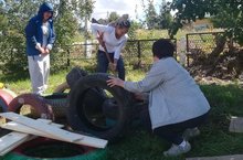 Территория МБОУ "Введенско-Слободская ООШ" скоро пополнится еще одной интересной поделкой. Педагоги школы во главе с директором школы Лилией Морозенковой работают над созданием крутого автомобиля из автомобильных покрышек. Особенно ценно то, что такие интересные вещи можно сделать своими руками. И финансовые вложения минимальны. После того, как все будет готово, эта машина займет свое место в зоне отдыха. И дети, и взрослые смогут посидеть в тени дерева на ярких сиденьях. Ждите фото готового изделия!