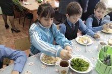 В МБОУ « Введенско – Слободская ООШ» выращивается зелёный лук. Учитель технологии с ребятами занимается выращиванием зелёного лука зимой, в школьных условиях. Данный продукт расположен на подоконниках и после созревания украшает обеденный стол. Лук служит не только украшением стола, но и поддерживает здоровье учащихся.