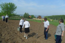 На пришкольном участке - горячая пора. 27 мая 2014 года учащиеся и учителя МБОУ « Введенско – Слободская ООШ» снова вышли на пришкольный участок. Цель – посадка картофеля. Руководитель: учитель технологии Никифоров С. П. Все участники потрудились на славу. Работа шла быстро, слаженно. Терпенье и труд – всё перетрут.