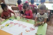 26 сентября 2022 на занятии в Введенско-Слободском детском саду воспитанники разновозратсной группы создали прекрасную совместную осенную аппликацию. Каждый из ребят внес в картину "Осенний лес" частичку своего труда. В зависимости от возрастной группы дети создавали каждый свою часть картины - грибы (подберезовики и мухоморы), разноцветные осенние листья, тонкие полоски травы.
