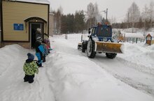 Участок детского сада зимой должен поддерживаться в состоянии, пригодном для прогулок и физкультурных занятий дошкольников. Прилегающая территория Введенско-Слободского детского сада ежедневно очищается от снега и наледи, в том числе с использованием спецтехники.