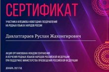 Давлатгараев Руслан принял участие во флешмобе "Новый год на родном языке" и получил сертификат