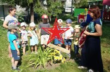 Не равнодушные воспитатели детского сада Лариса Николаевна Чулкова, Гульназ Вахитовна Шарафутдинова, Светлана Леонидовна Несмелова организовали с воспитанниками летние композиции на участках, оформили теневые навесы- веранды по тематике «75 лет Победы!» Педагоги к этому мероприятию подошли очень творчески, с энтузиазмом, подключив не только семьи воспитанников, но свои семьи.