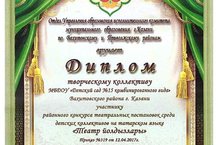 Диплом творческому коллективу "Театр йолдызы" 20.06.2017