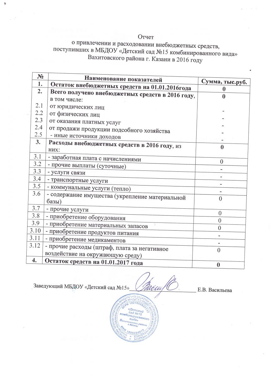 Отчёт о привлечении и расходовании внебюджетных средств - 2016г.
