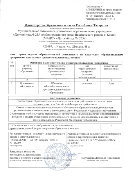 УСТАВ МБДОУ "Детский сад №255 комбинированного вида" Вахитовского района г. Казани
