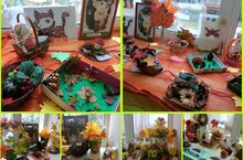 Выставка "Осенняя фантазия" проходила в течение недели. В своих работах ребята использовали разные природные материалы кабачки, тыквы и патиссоны, картофель, морковь и свёклу, различные шишки, листики, цветы и веточки. Работы выполнялись в разных техниках: аппликация, аппликация на пластилине, моделирование, букеты, панно.