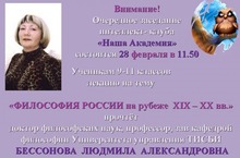 Лекция на тему "Философия России на рубеже XIX - XX вв." состоится 28 февраля в 11.50