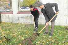 14.10.13. Выпускники на школьном дворе посадили 10 рябинок.