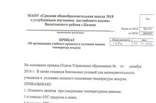 Приказ об организации учебного процесса в условиях низких температур воздуха