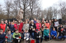 23 апреля 2016 в «День Георгиевской ленты» 8Б и 8В классы с учителями И.В. Бухариной и И.В. Карповой провели субботник на Арском кладбище, убирая могилы красноармейцев, умерших от ран в госпиталях Казани во время Великой Отечественной войны. Придя раньше ребят из других школ, мы помыли памятники, возложили цветы к могилам, привели в порядок заброшенные могилы красноармейцев, находящиеся в отдалении от центральных захоронений. В 9.30, вместе с учениками из других школ Вахитовского района, мы приняли участие в митинге, посвящённом памяти подвига Героя Советского Союза Девятаева. Молодцы!