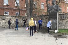 Сегодня в школе прошел субботник, ребята убрали территорию школы и прилегающие к ней тротуары, помыли ограждение и подоконники фасада здания а также подмели возле бюста А.В. Вишневскому и помыли постамент.