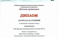 Поздравляем участников хоровой студии лицея и их руководителя Фатиму Касимовну Ахмадееву с успешным выступлением на Международном конкурсе вокально-хорового и музыкального творчества "Весенние проталины" - хор лицея стал Лауреатом II степени!