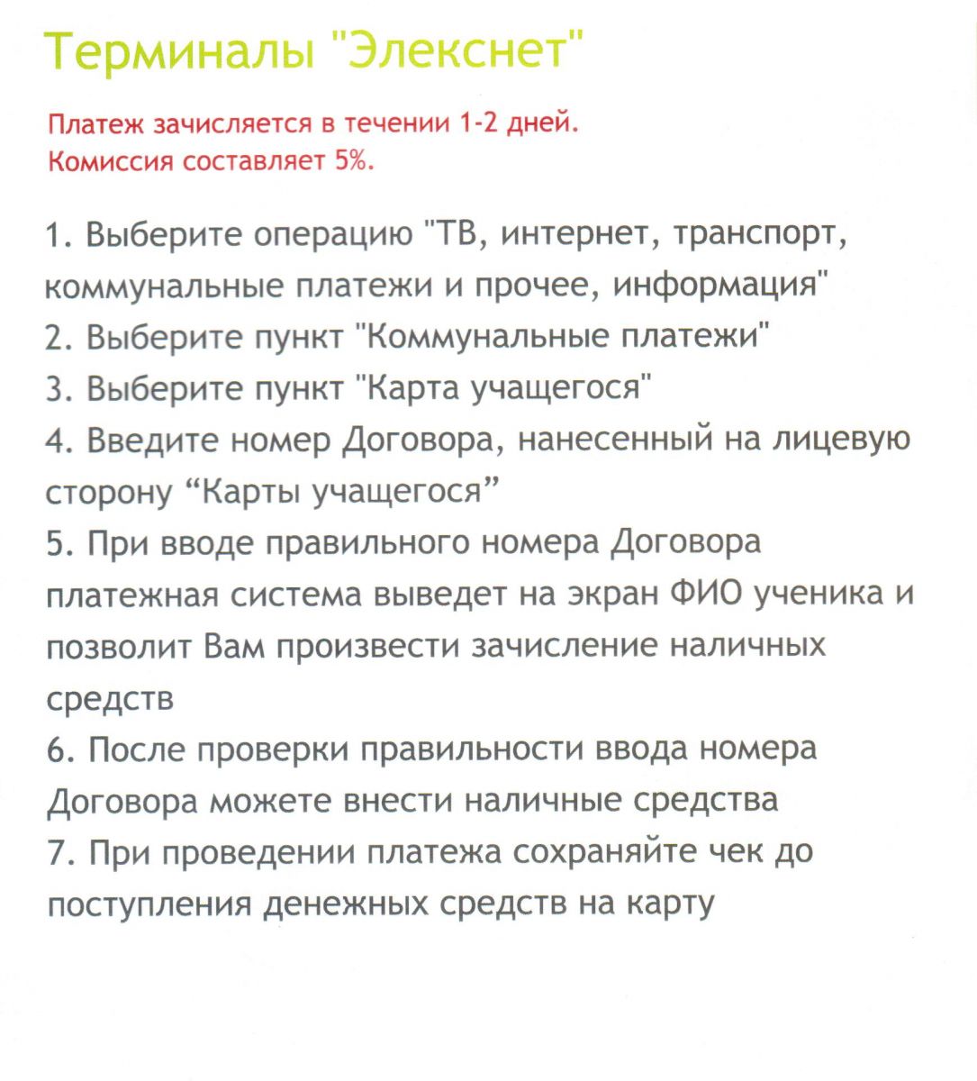 (Выбираете вкладку «Прочие платежи» - «Дошкольные, школьные учреждения» – «Карта учащегося» – вводите номер договора).